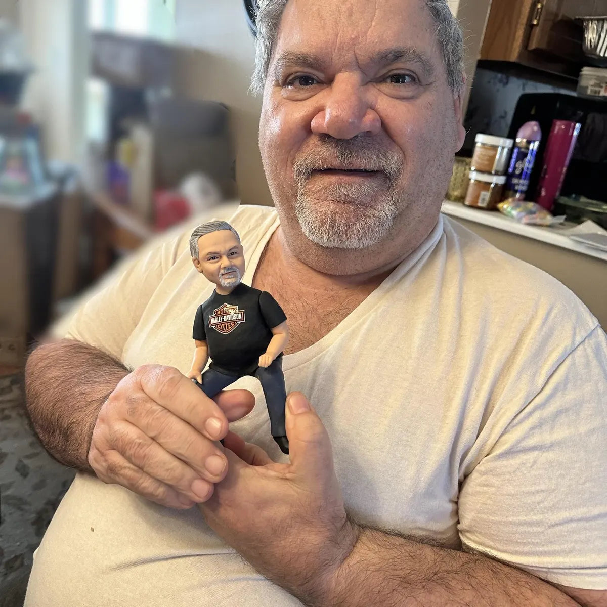 J’ai reçu ma figurine en cadeau de ma fille – c’est vraiment mon portrait craché 😄 Même le logo sur mon t-shirt a été reproduit à la perfection.